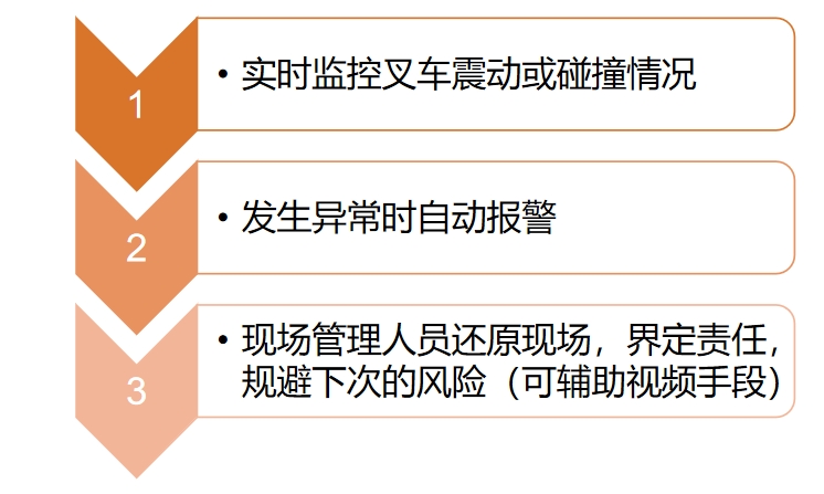 - 叉车受到大的外力或震动时,会发生报警(数据上传FMS),严重时可设置锁车