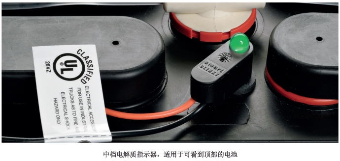 Philadelphia Scientific电解液位指示灯的探针安装在蓄电池中间某个单体内部,指示灯则固定在蓄电池上表面或者电缆上,当作业人员补充到适当水位时,液面指示灯显示绿灯并闪烁,当蓄电池需要补充电解液时指示灯将会处于熄灭状态(Basic系列)或者指示灯闪烁红灯(Smart系列),并且可根据闪烁的频率次数显示紧迫程度。